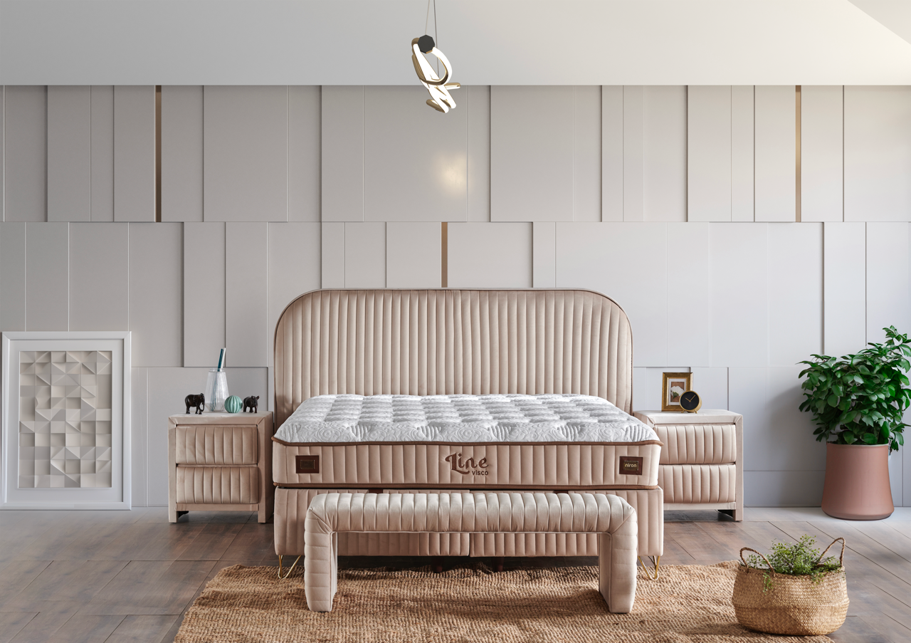 Line Visco Creme Boxspringbett mit Bettkasten