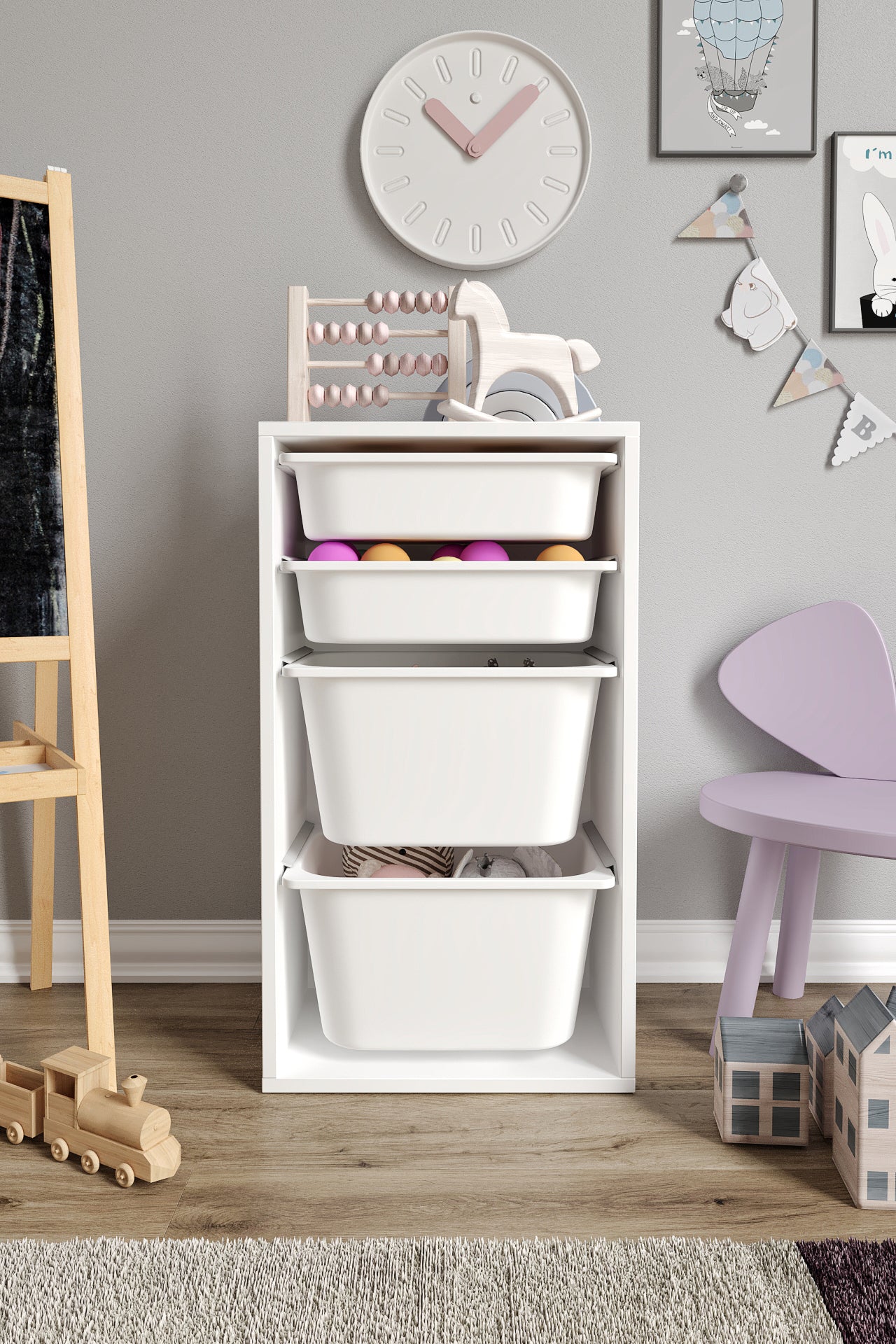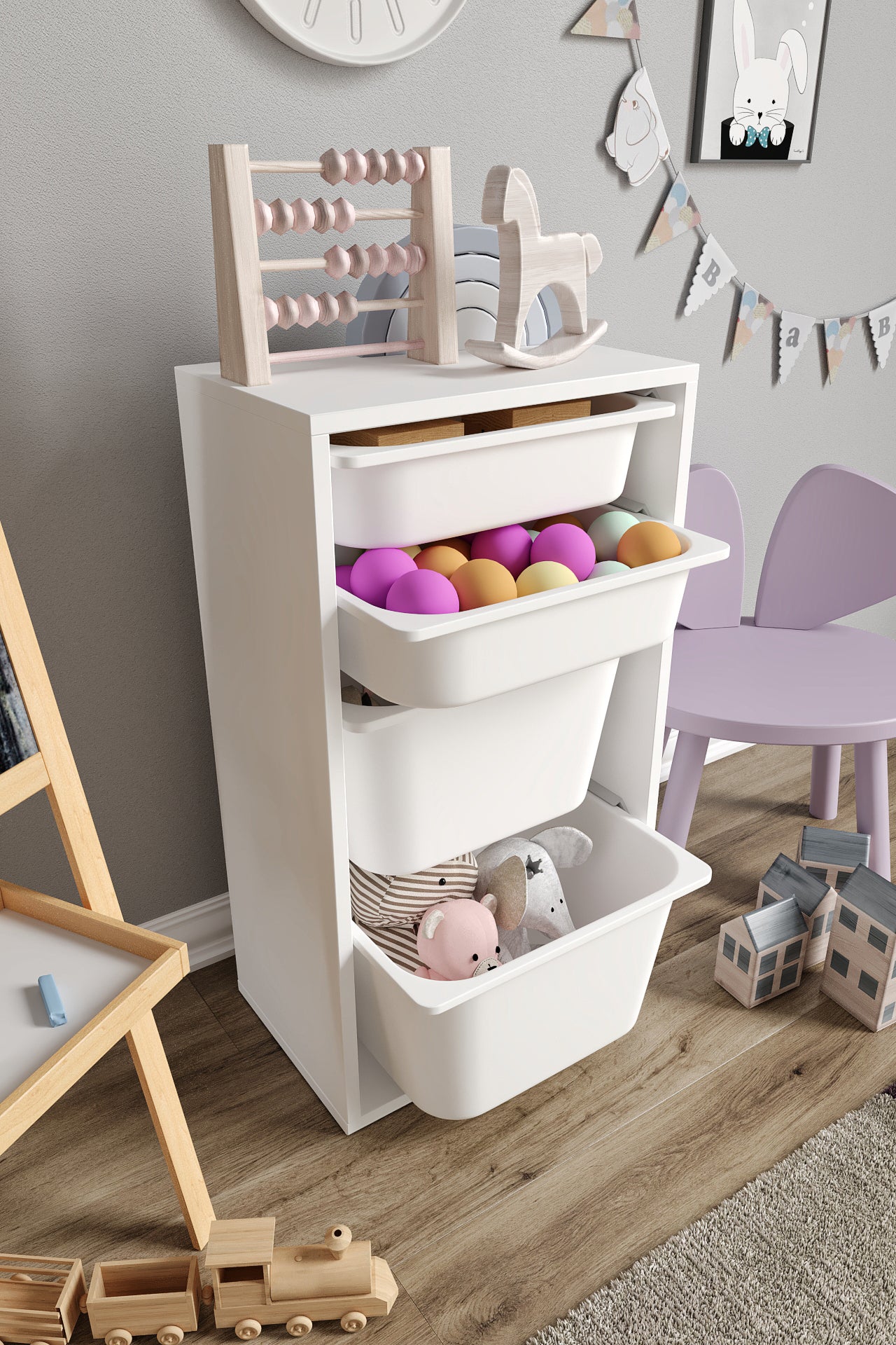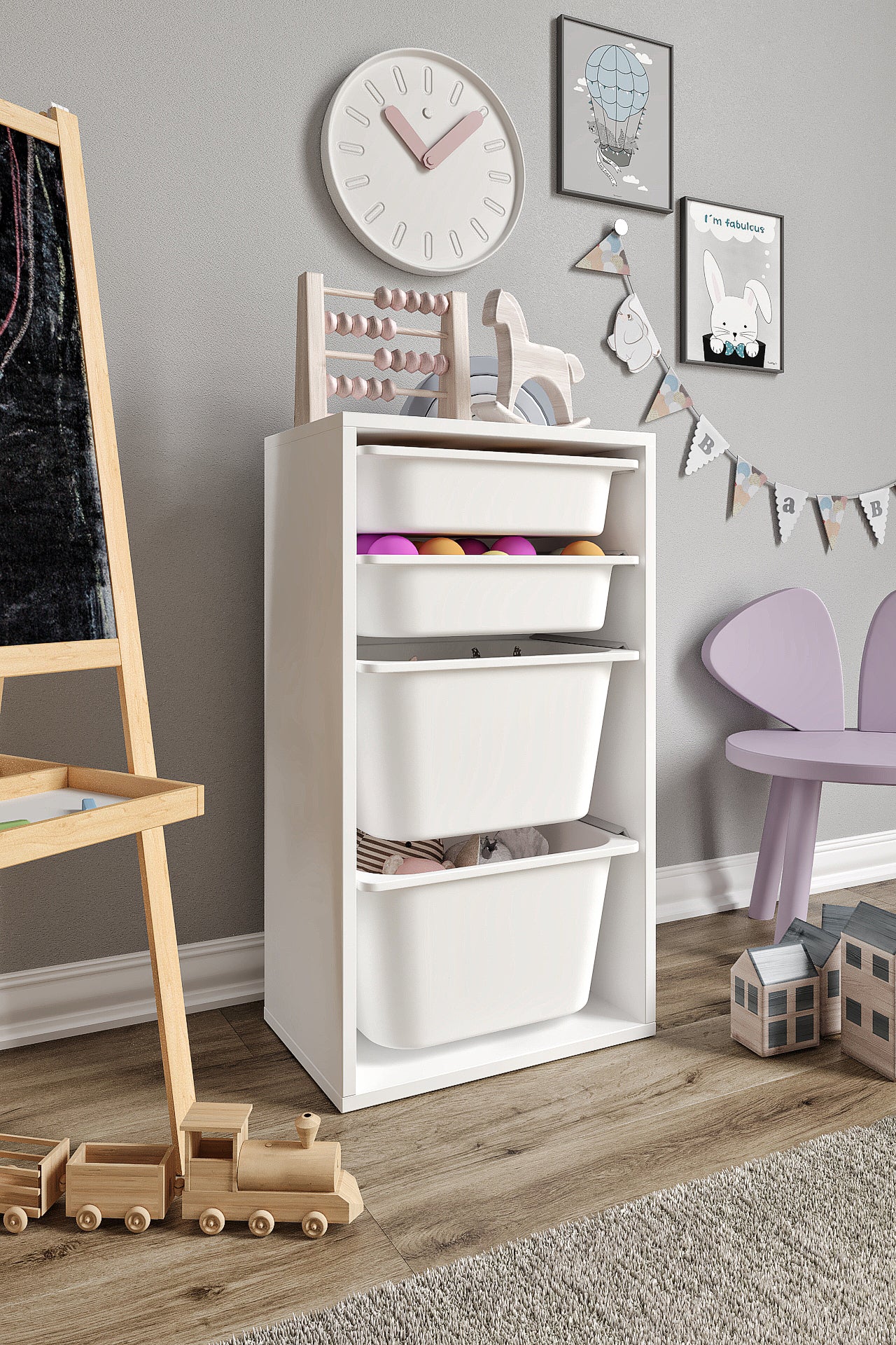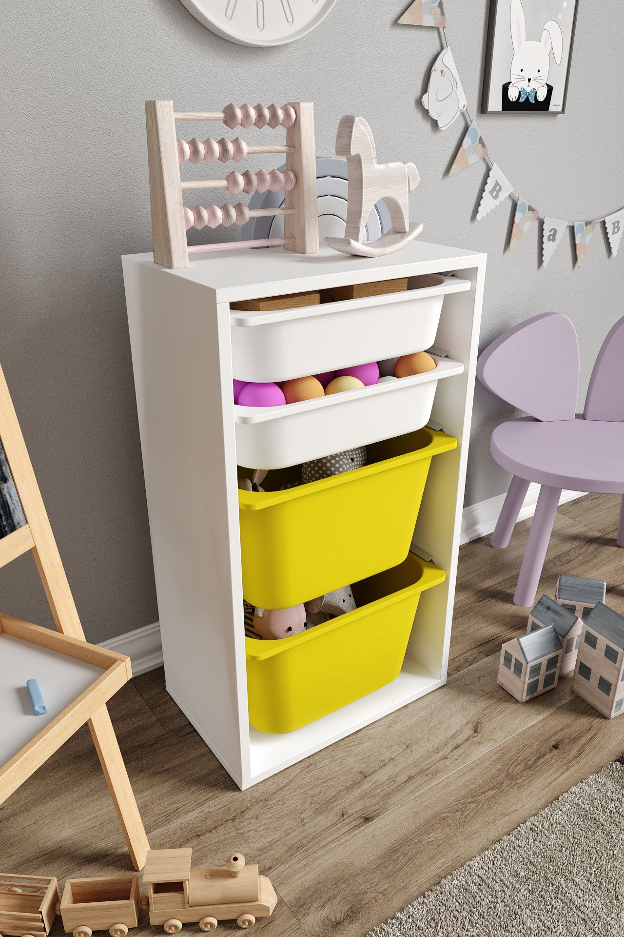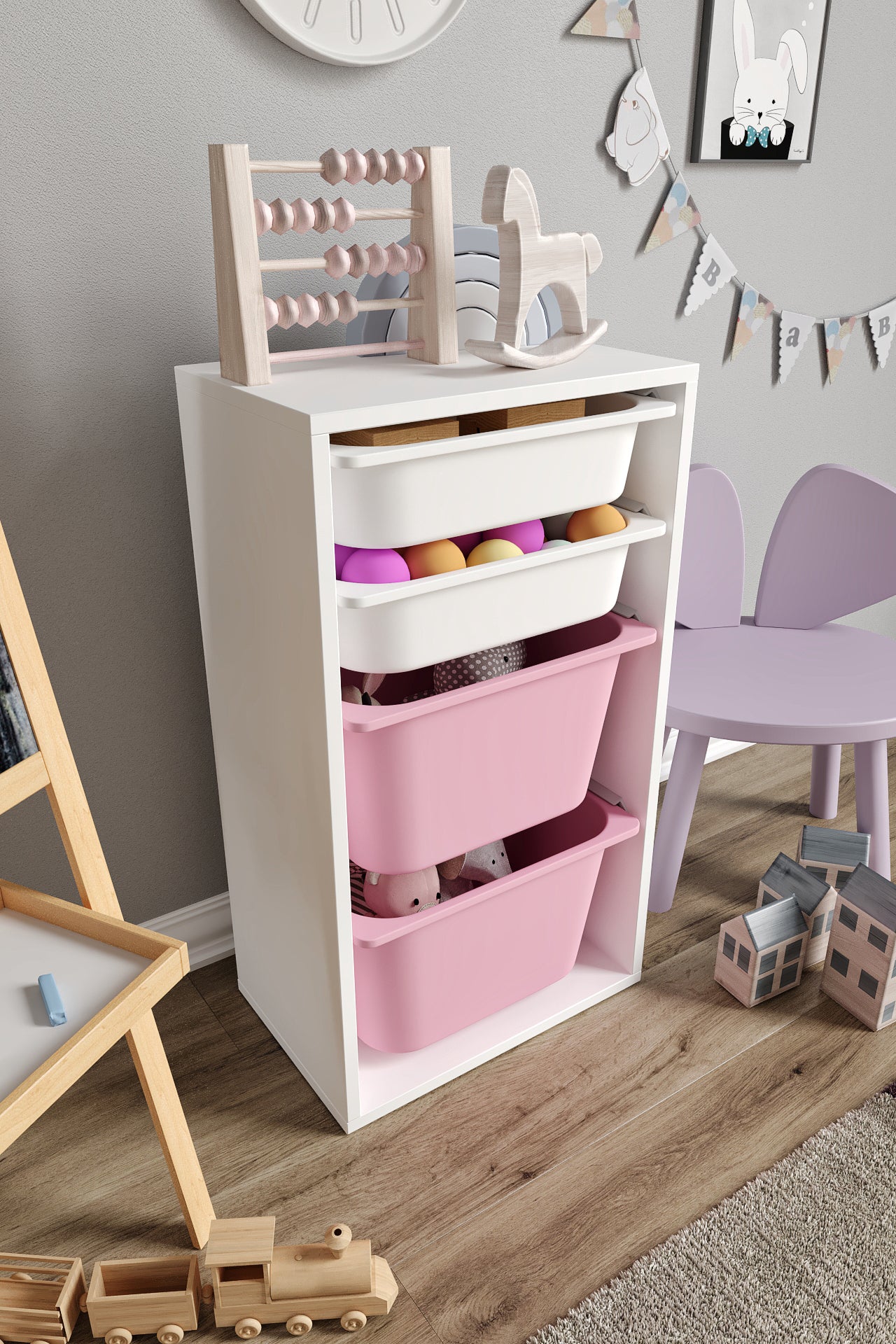 Spielzeugschrank mit 4 Körben, 100 % MDF (2 große Körbe, 2 mittelgroße Körbe)