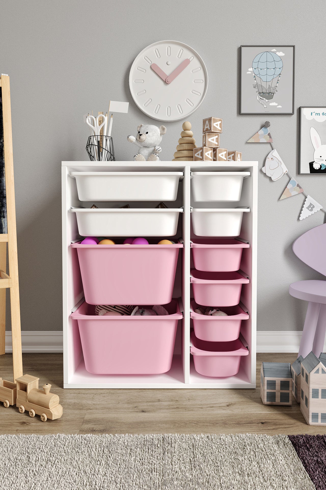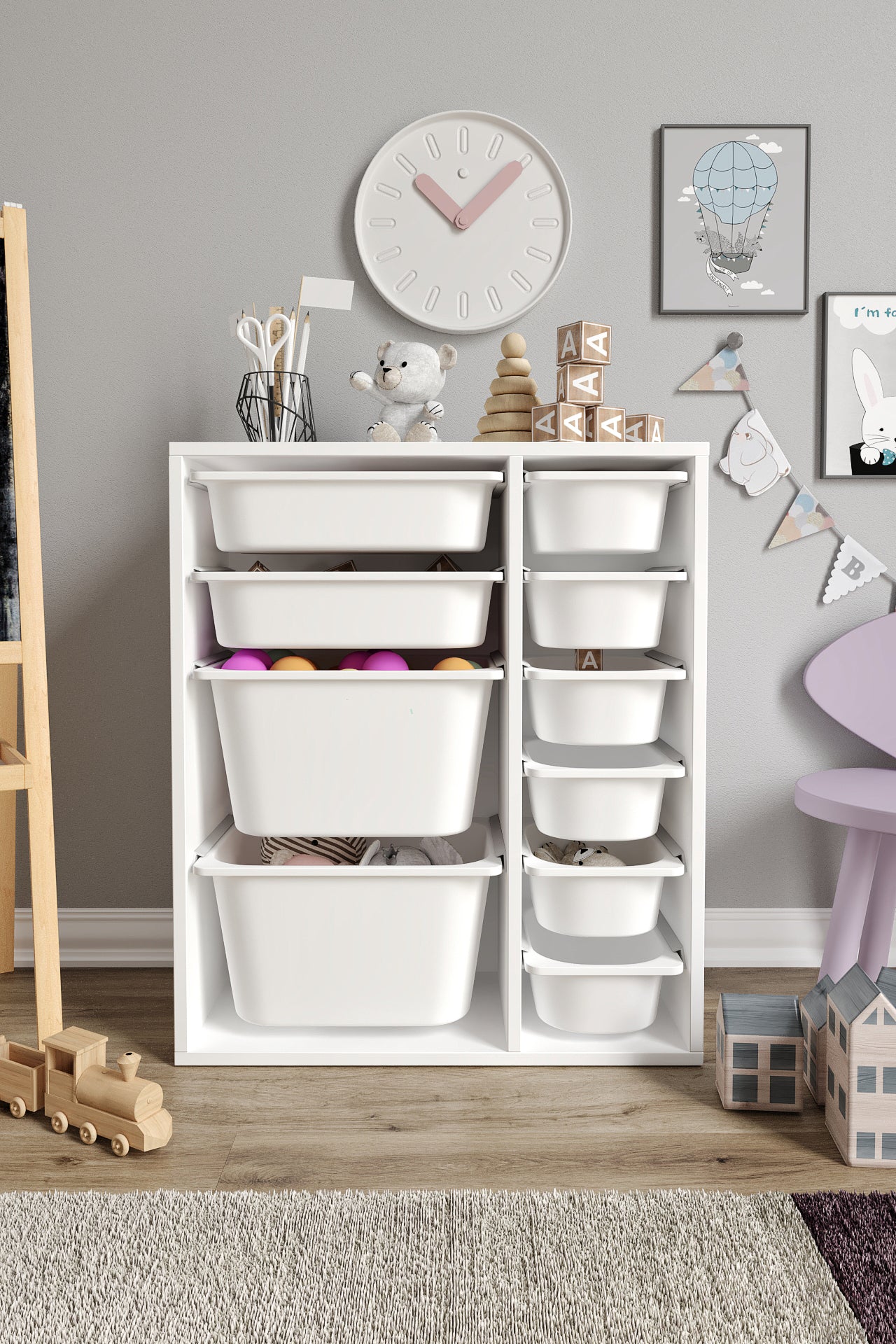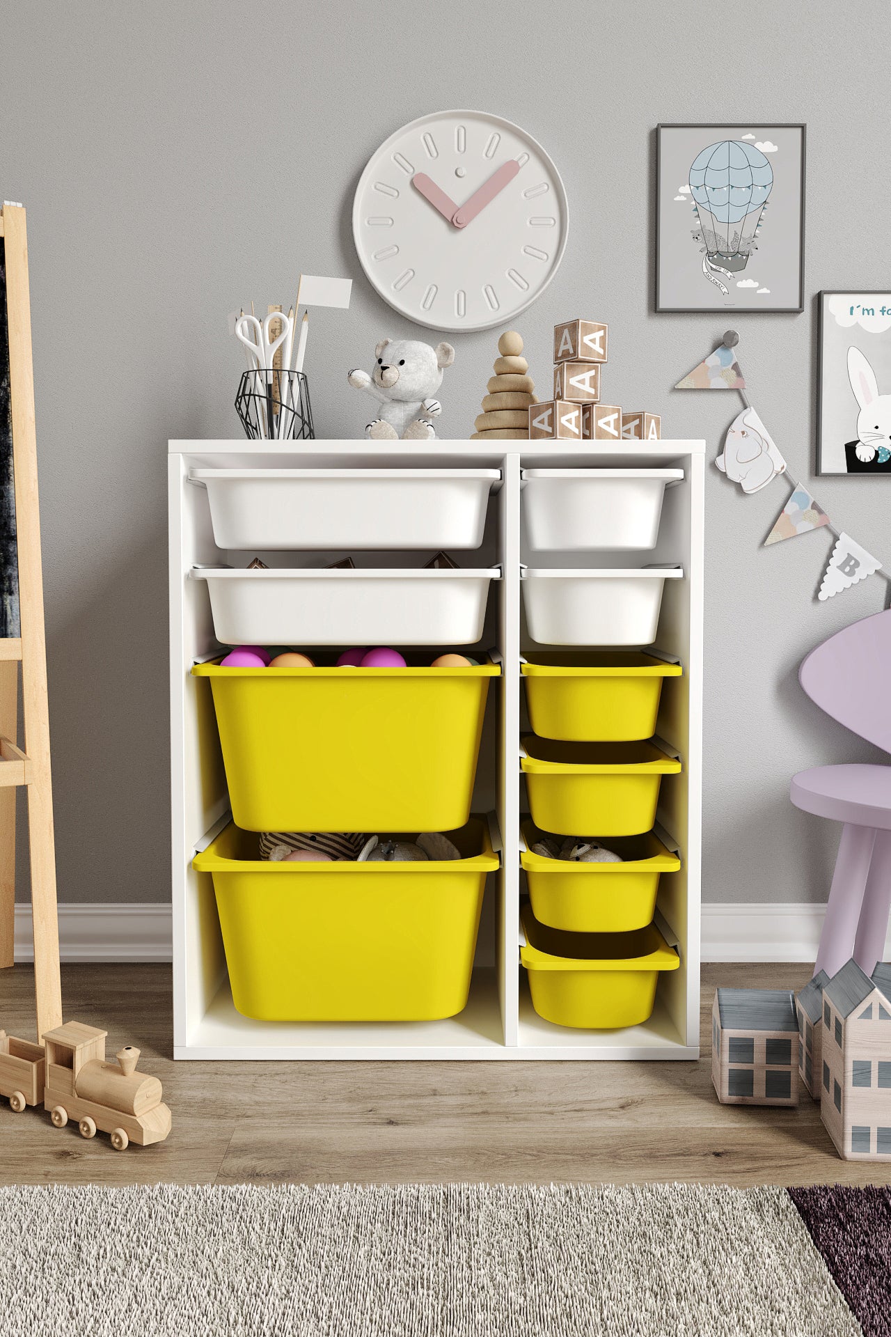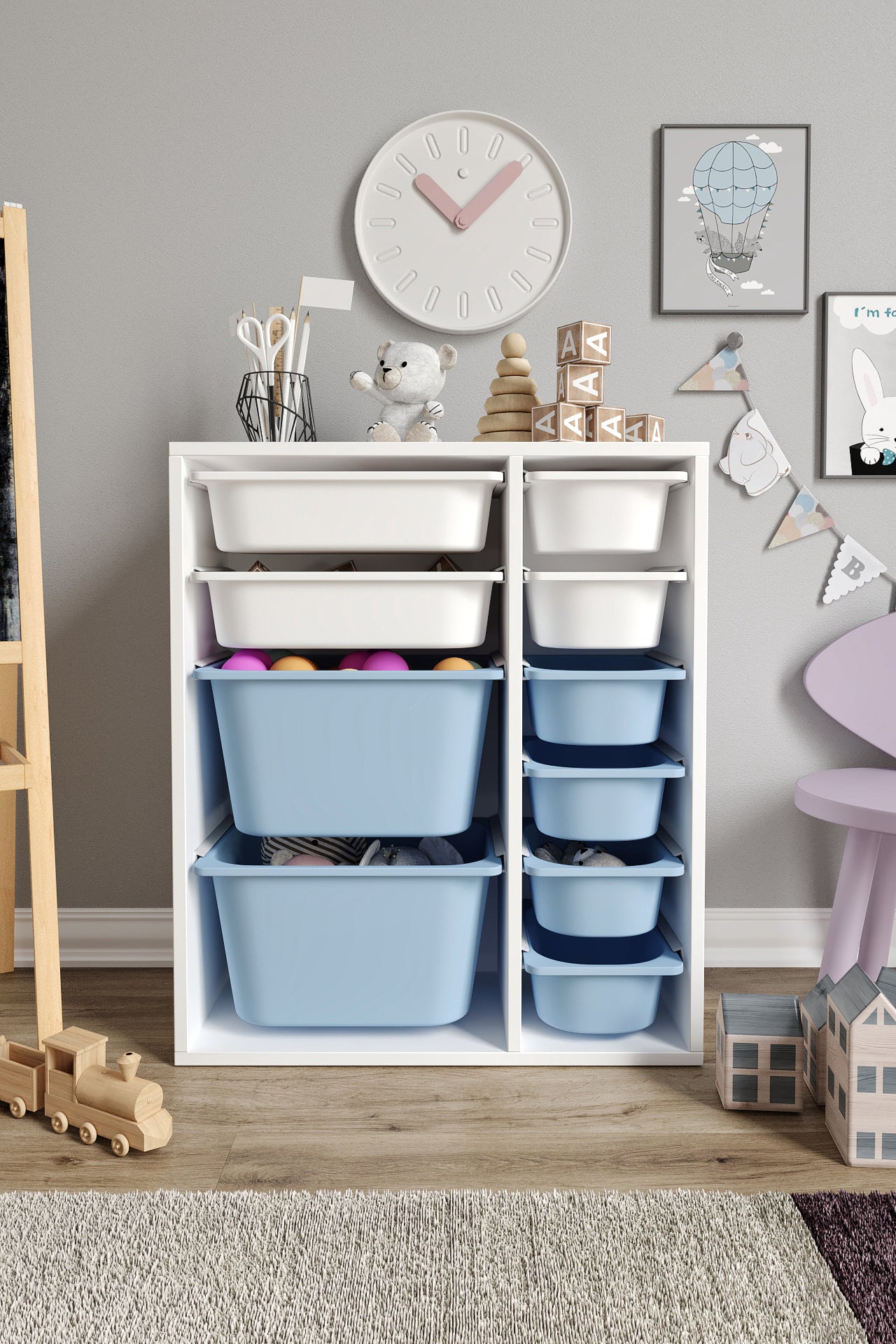 Spielzeugschrank mit 10 Körben, 100 % MDF (2 große Körbe, 2 mittelgroße Körbe, 6 kleine Körbe)