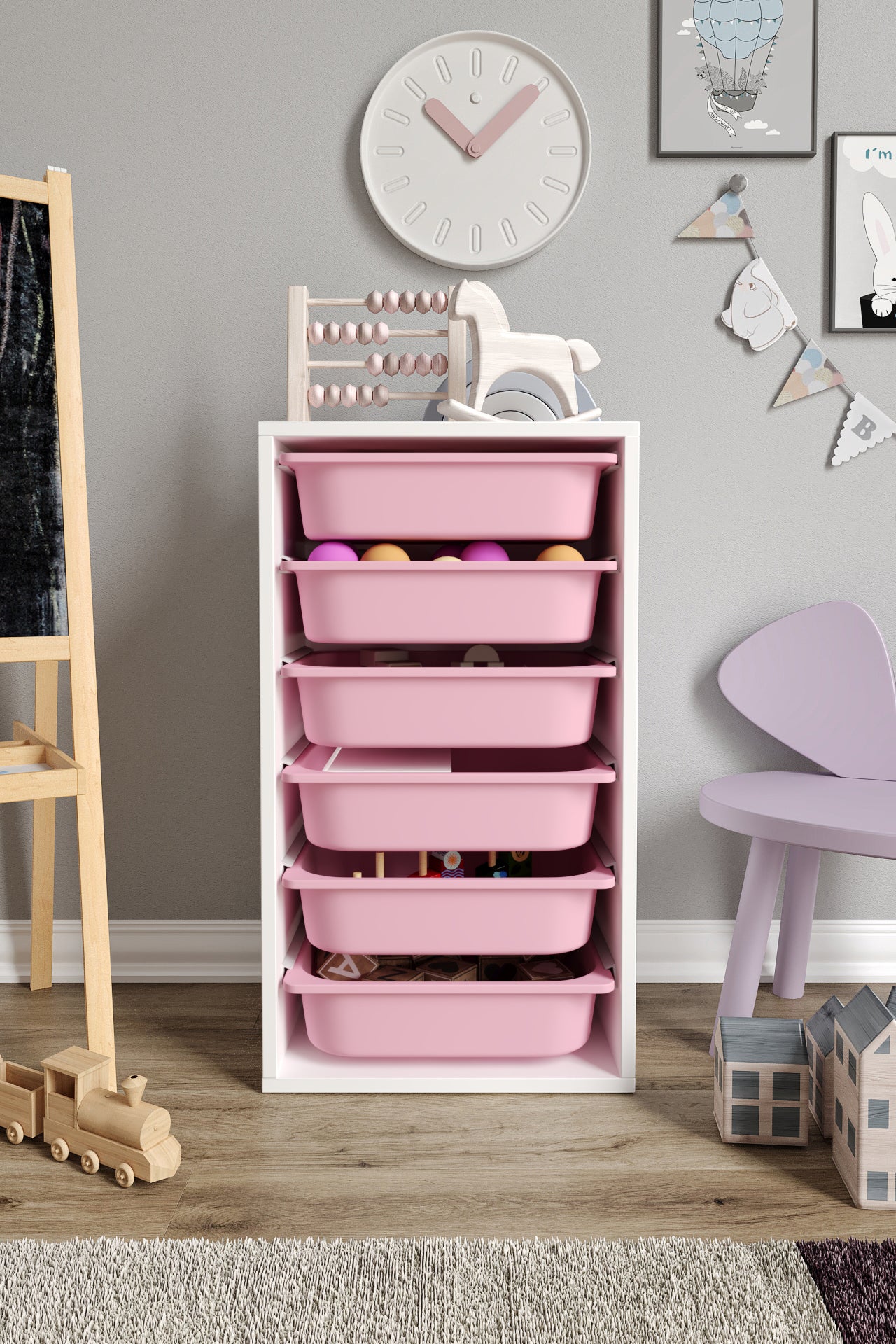 Spielzeugschrank mit 6 Körben, 100 % MDF (6 mittelgroße Körbe)