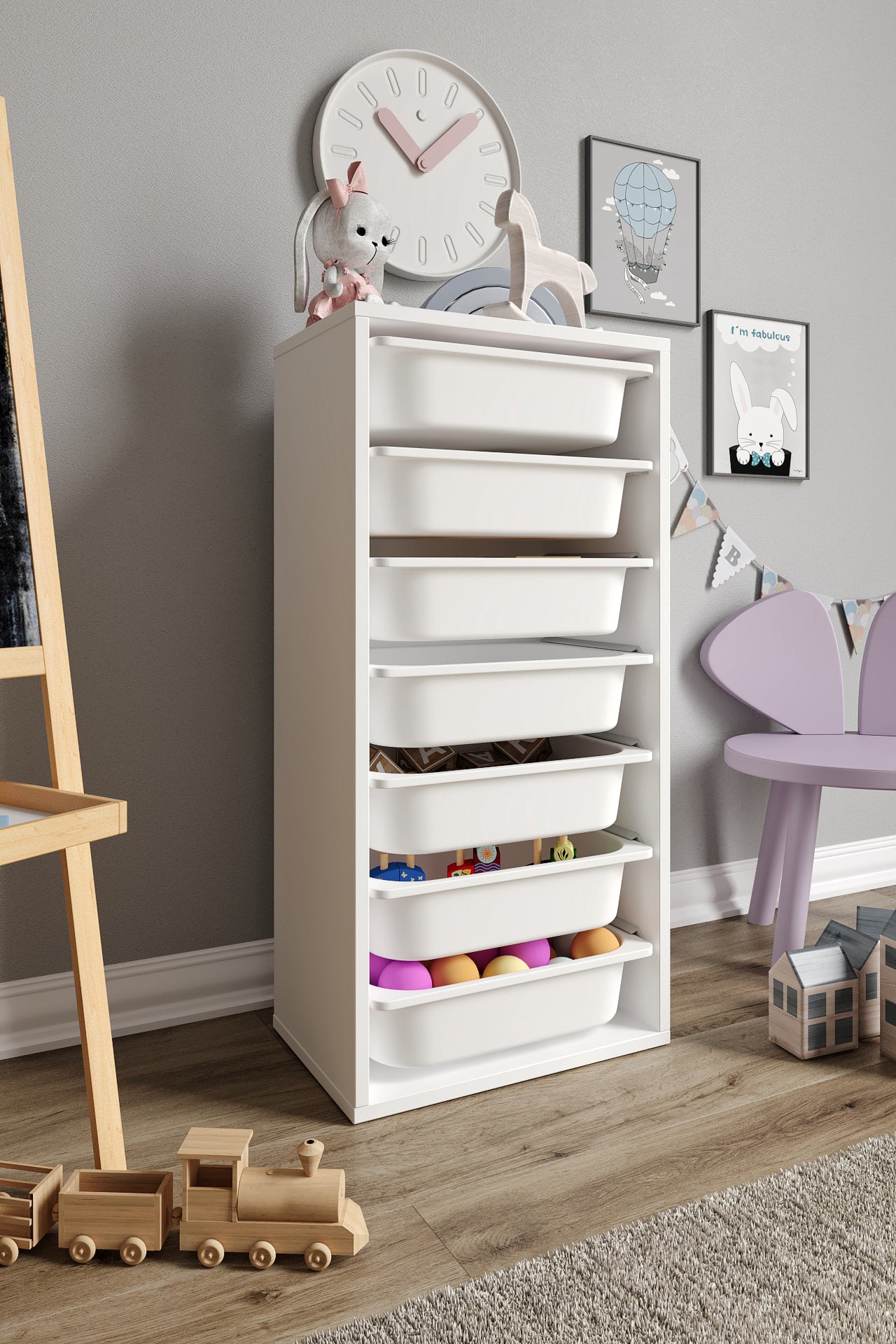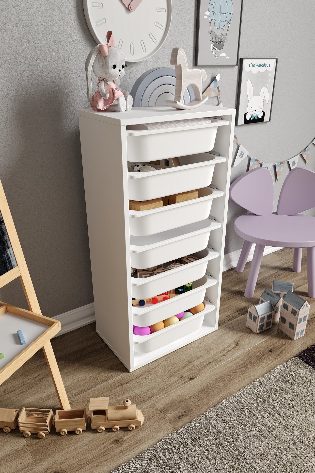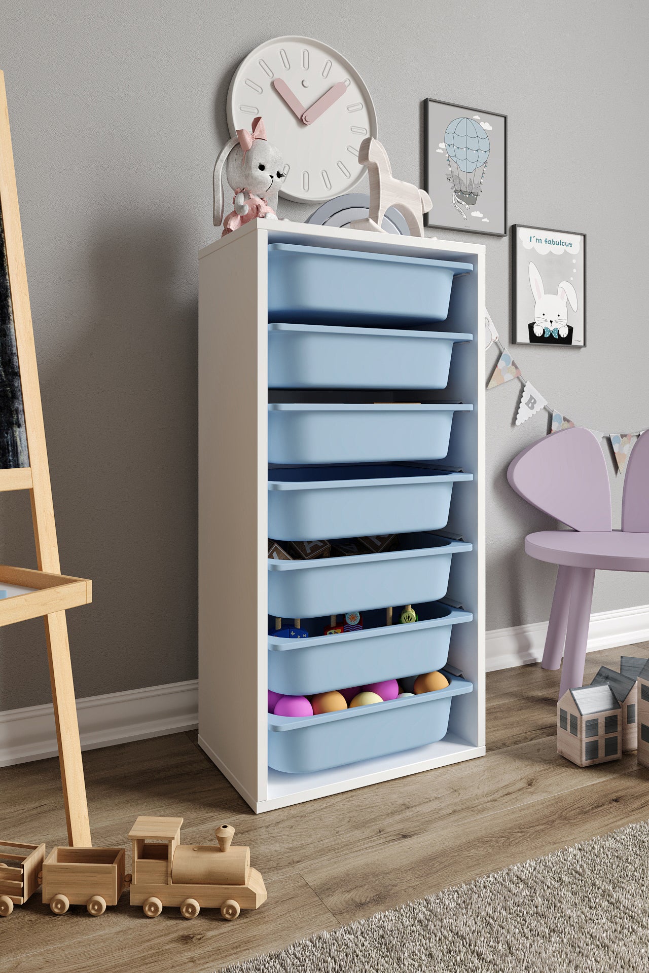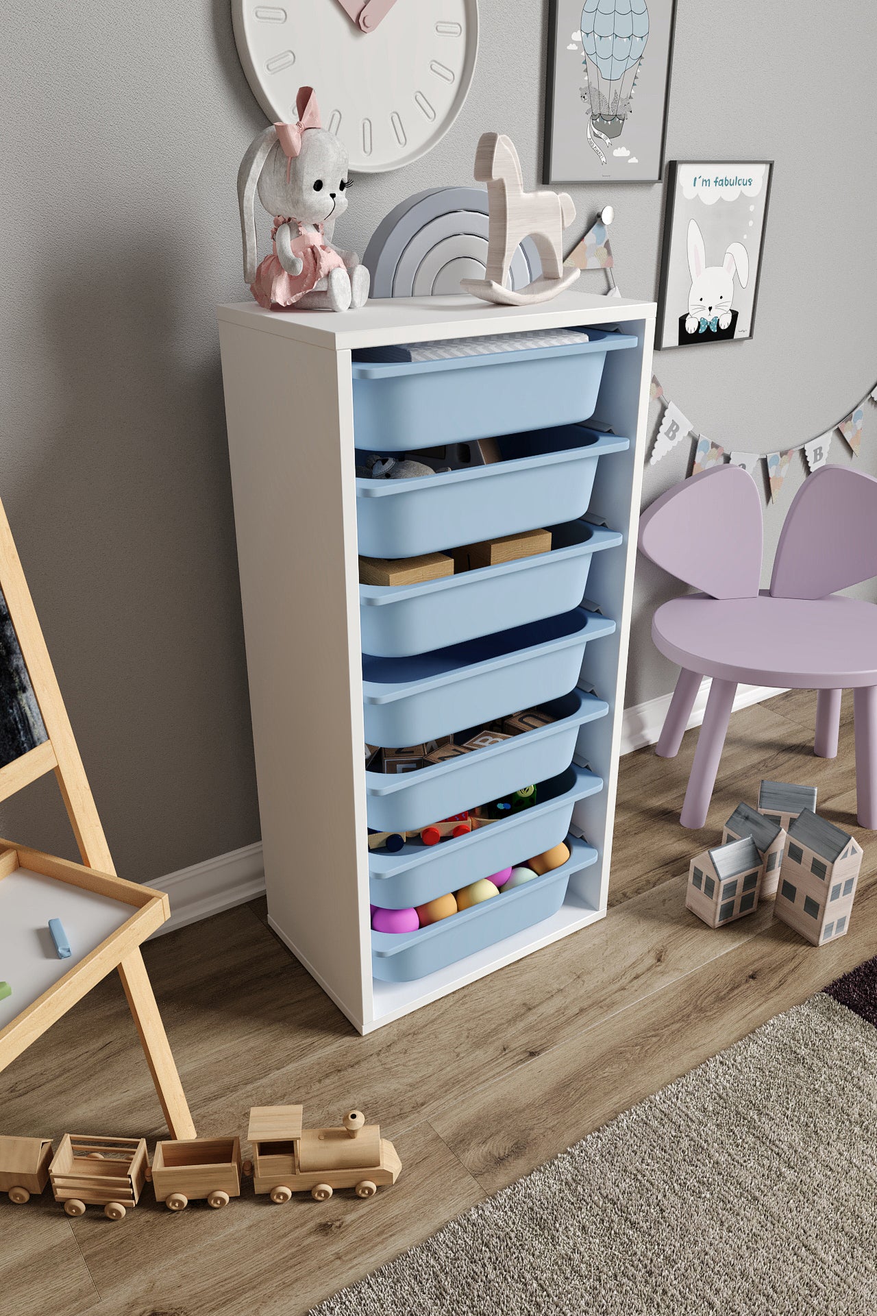 Spielzeugschrank mit 7 Körben, 100 % MDF (7 mittelgroße Körbe)