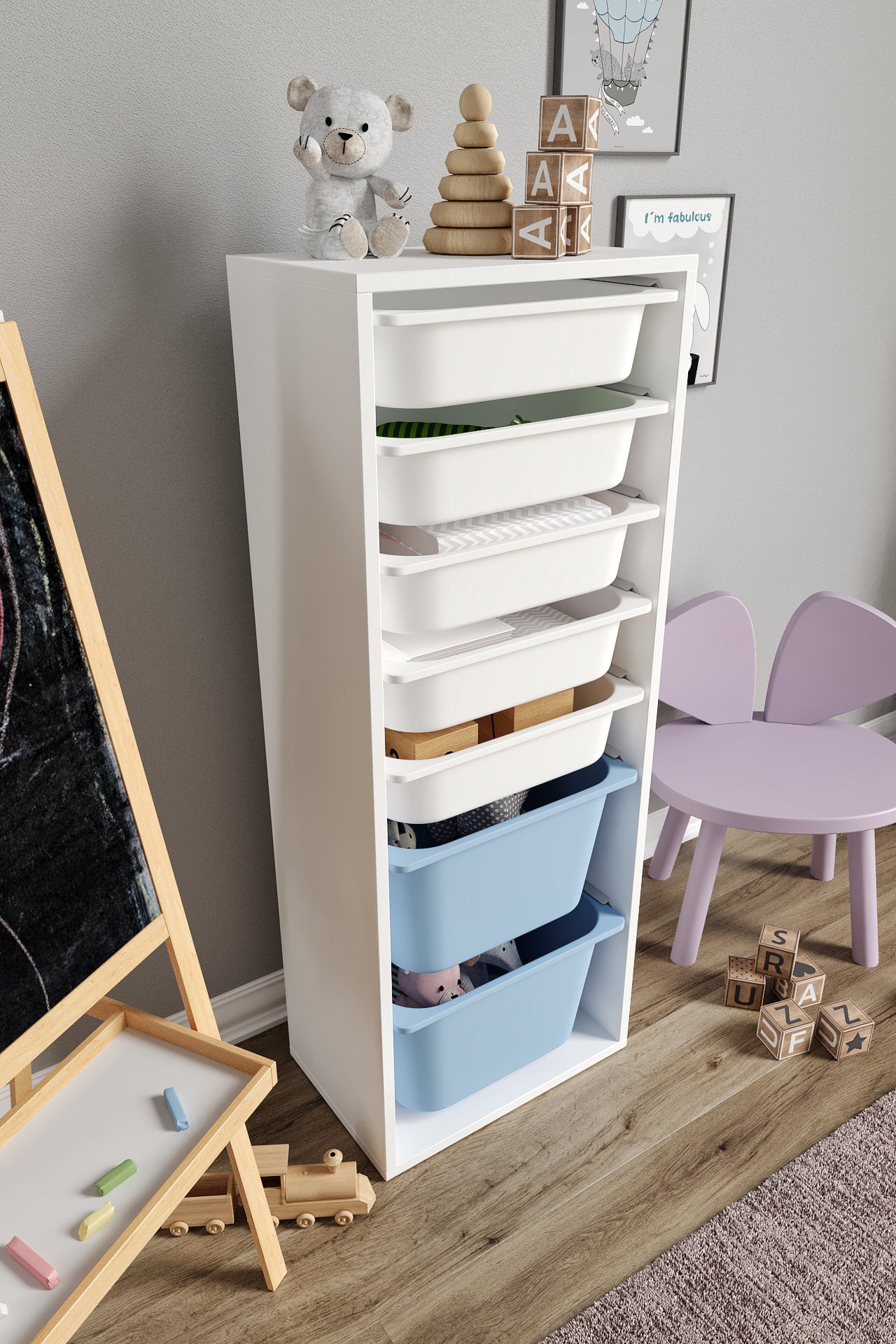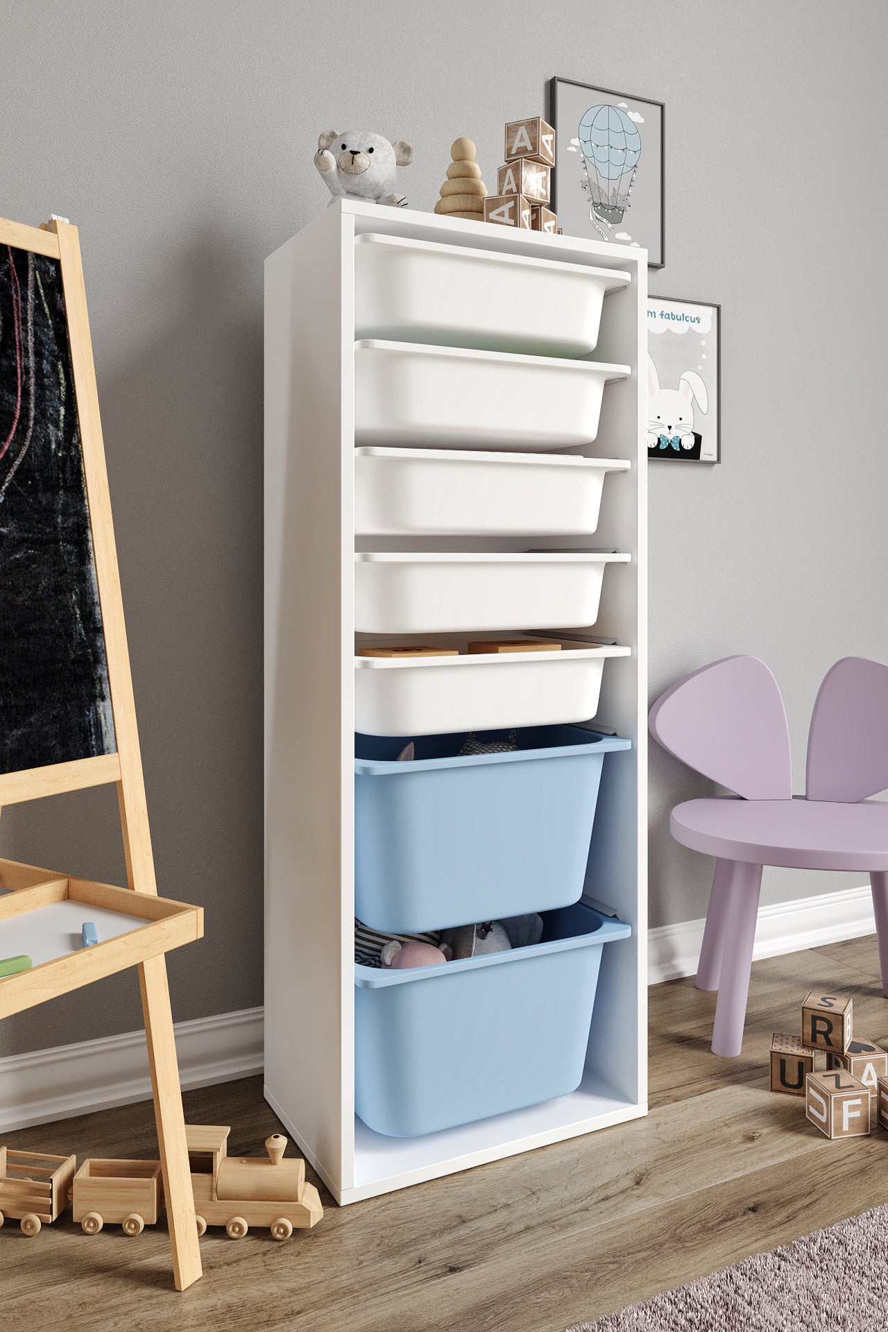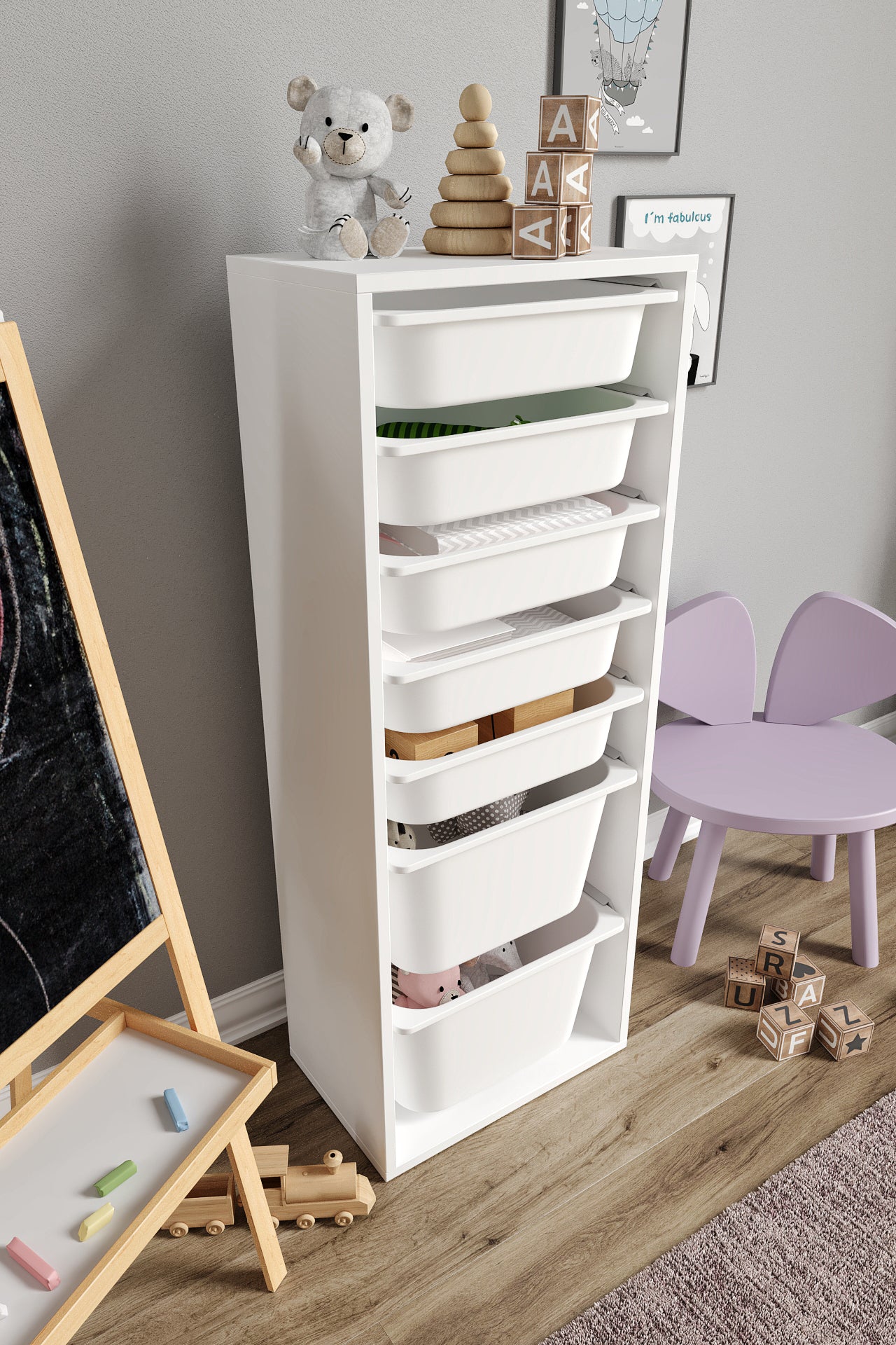 Spielzeugschrank mit 7 Körben, 100 % MDF (2 große Körbe, 5 mittelgroße Körbe)