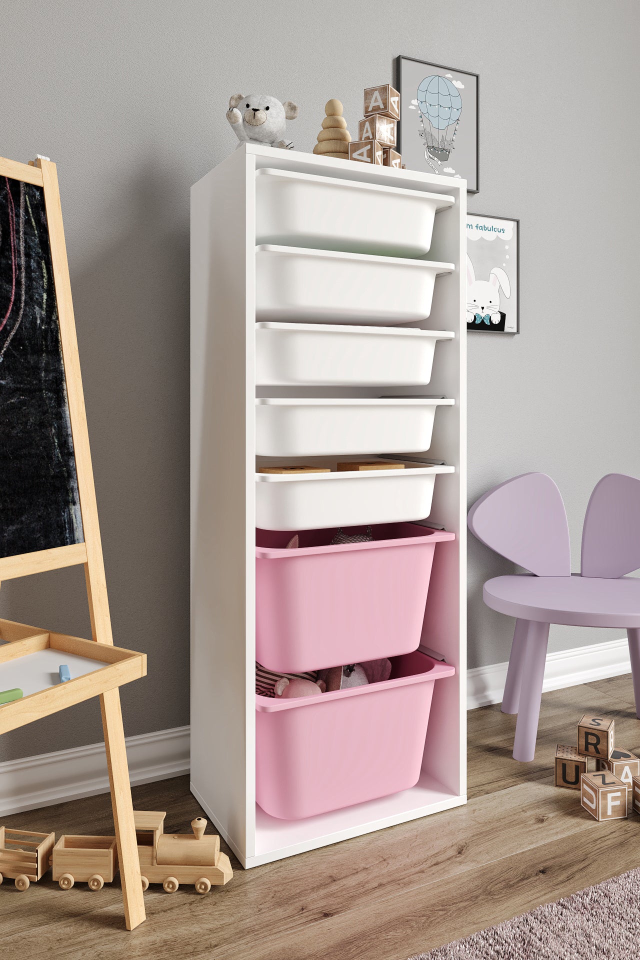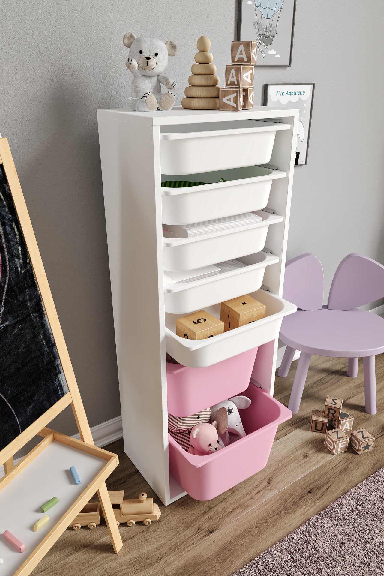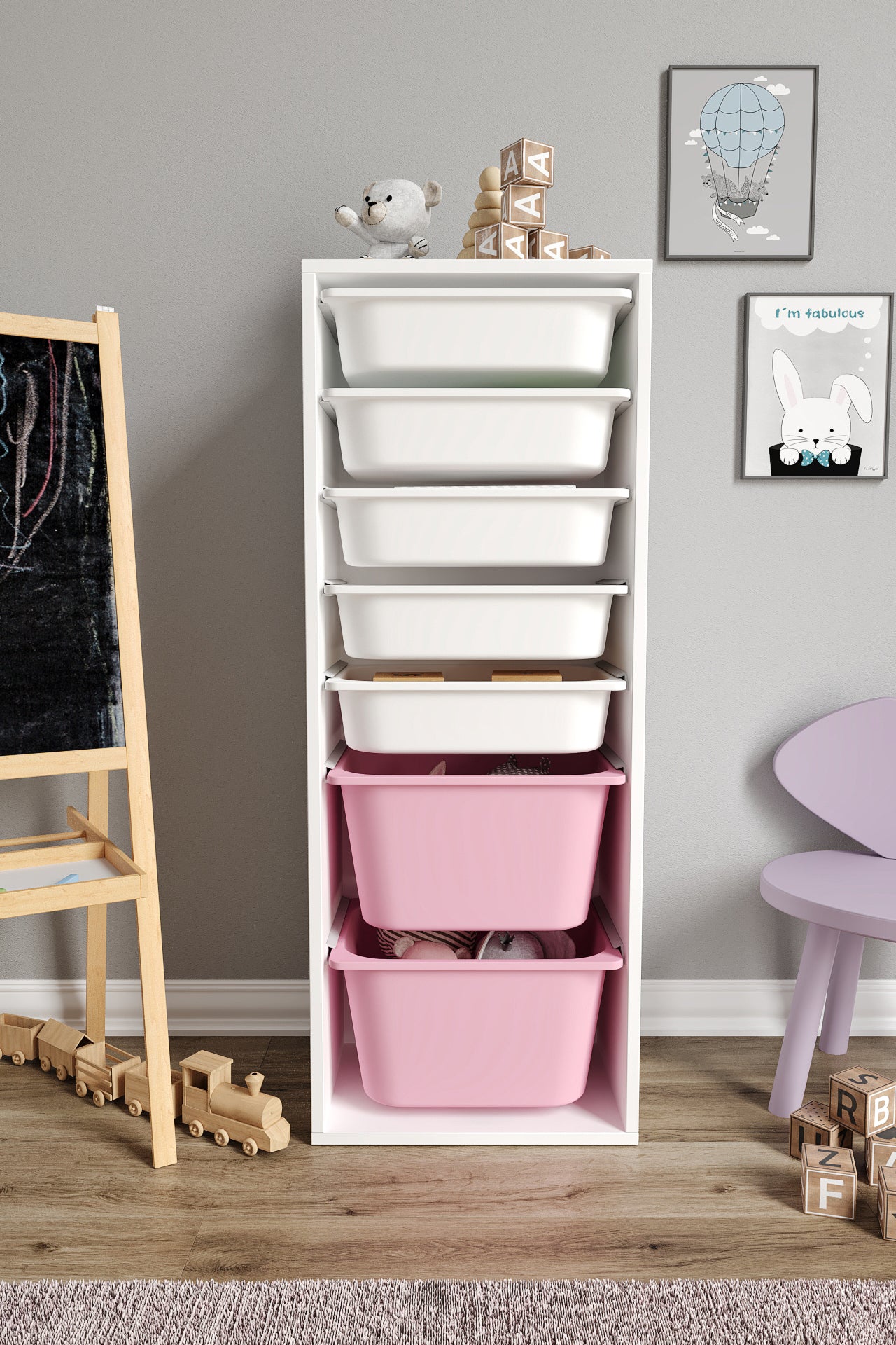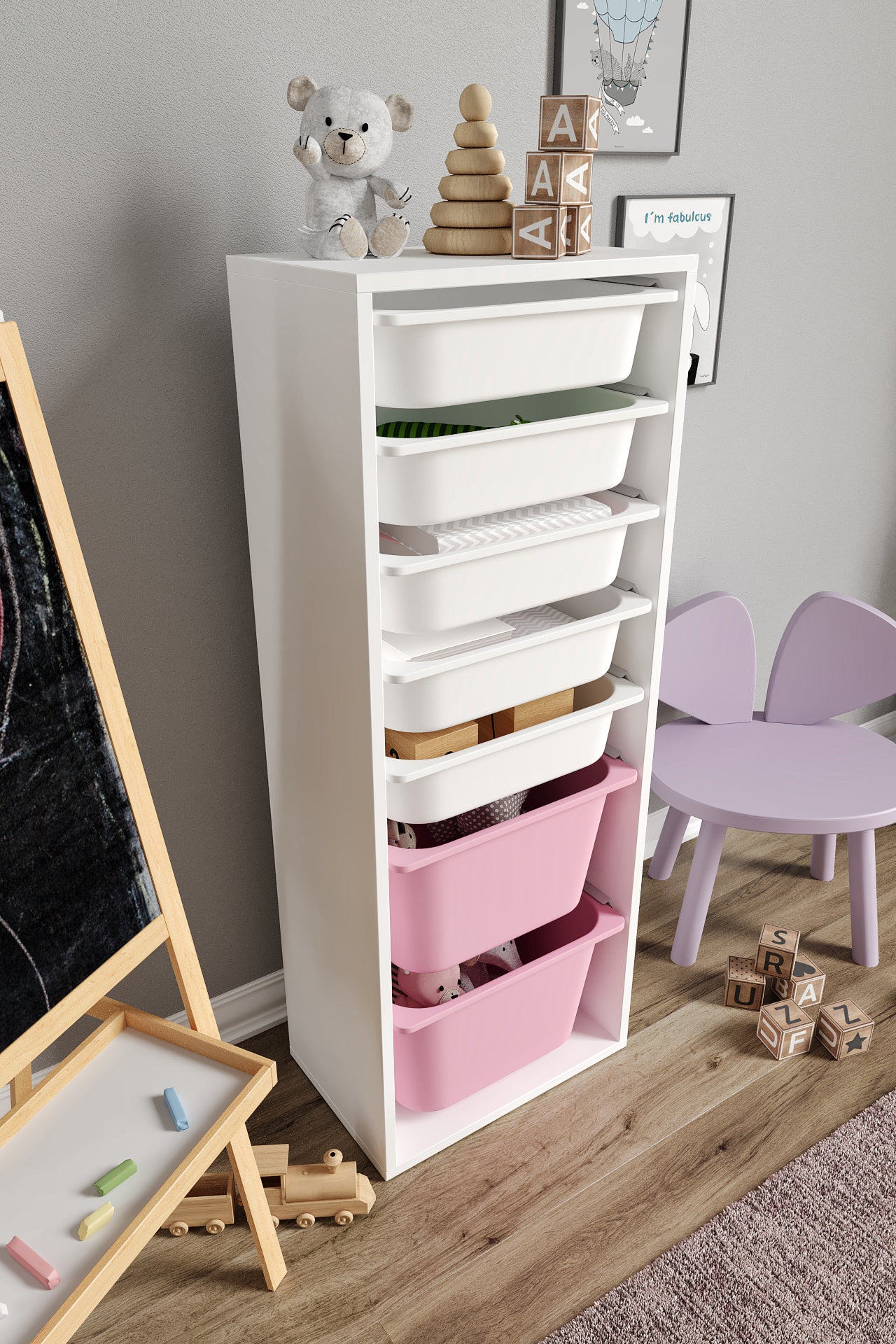 Spielzeugschrank mit 7 Körben, 100 % MDF (2 große Körbe, 5 mittelgroße Körbe)