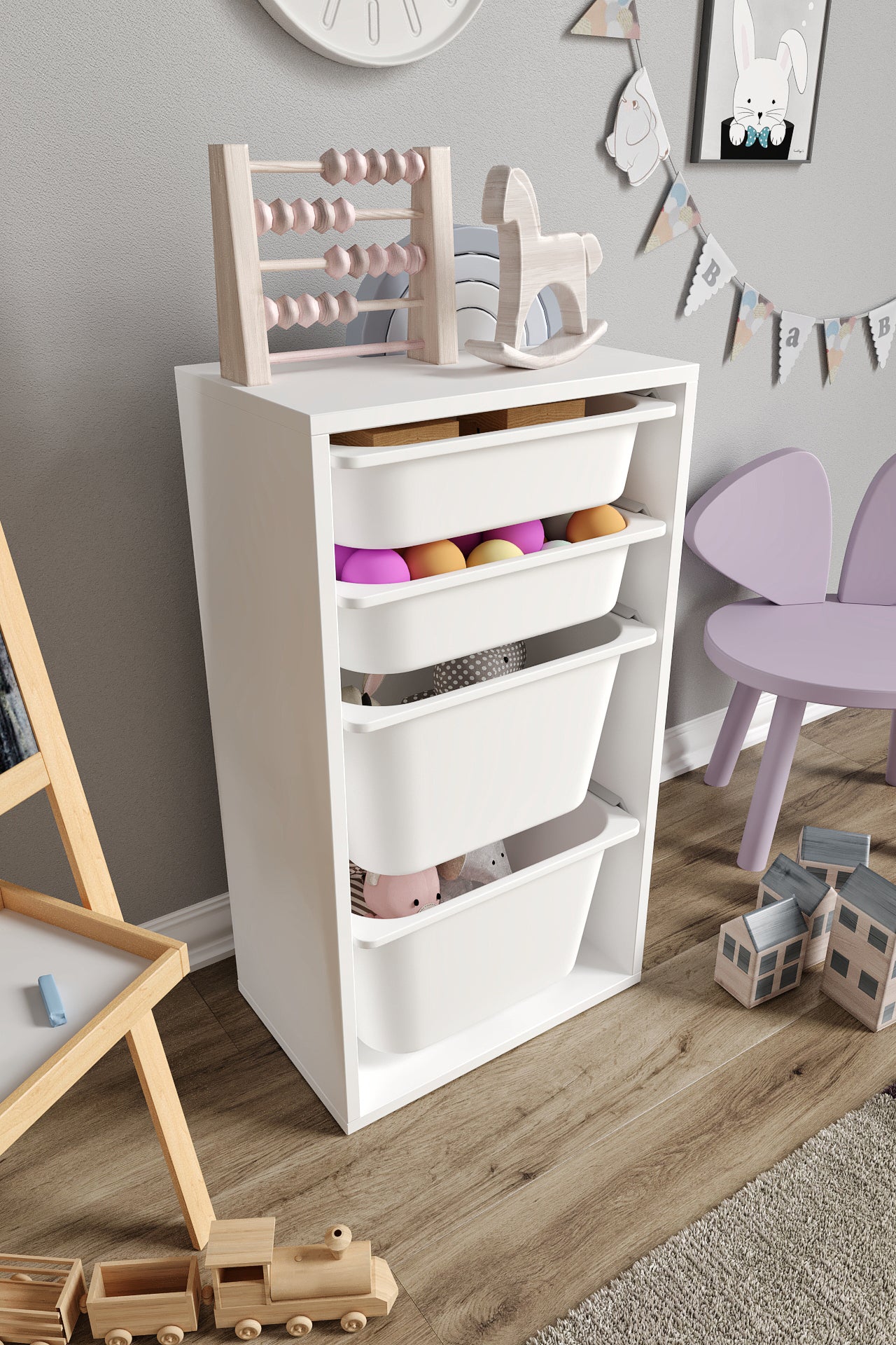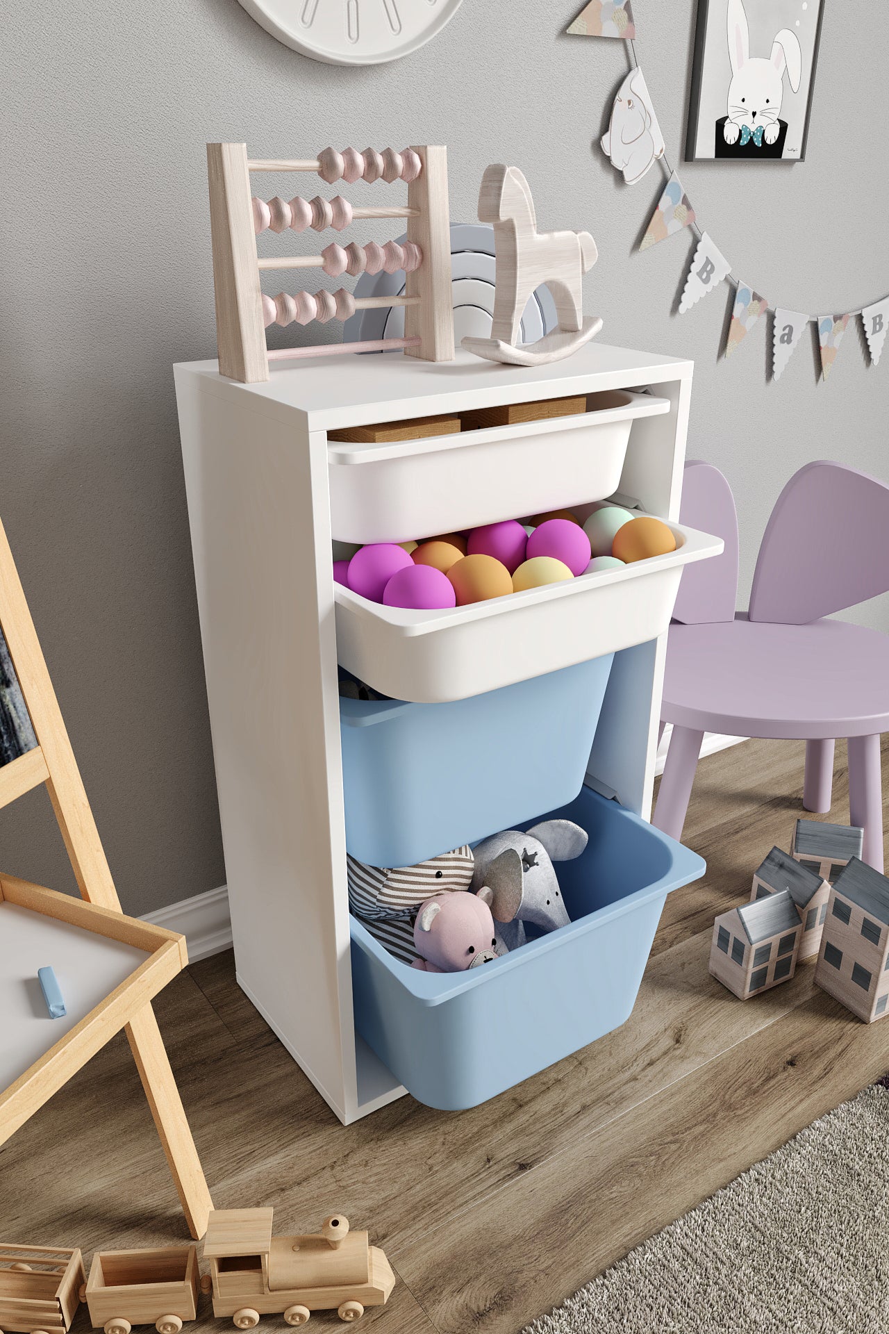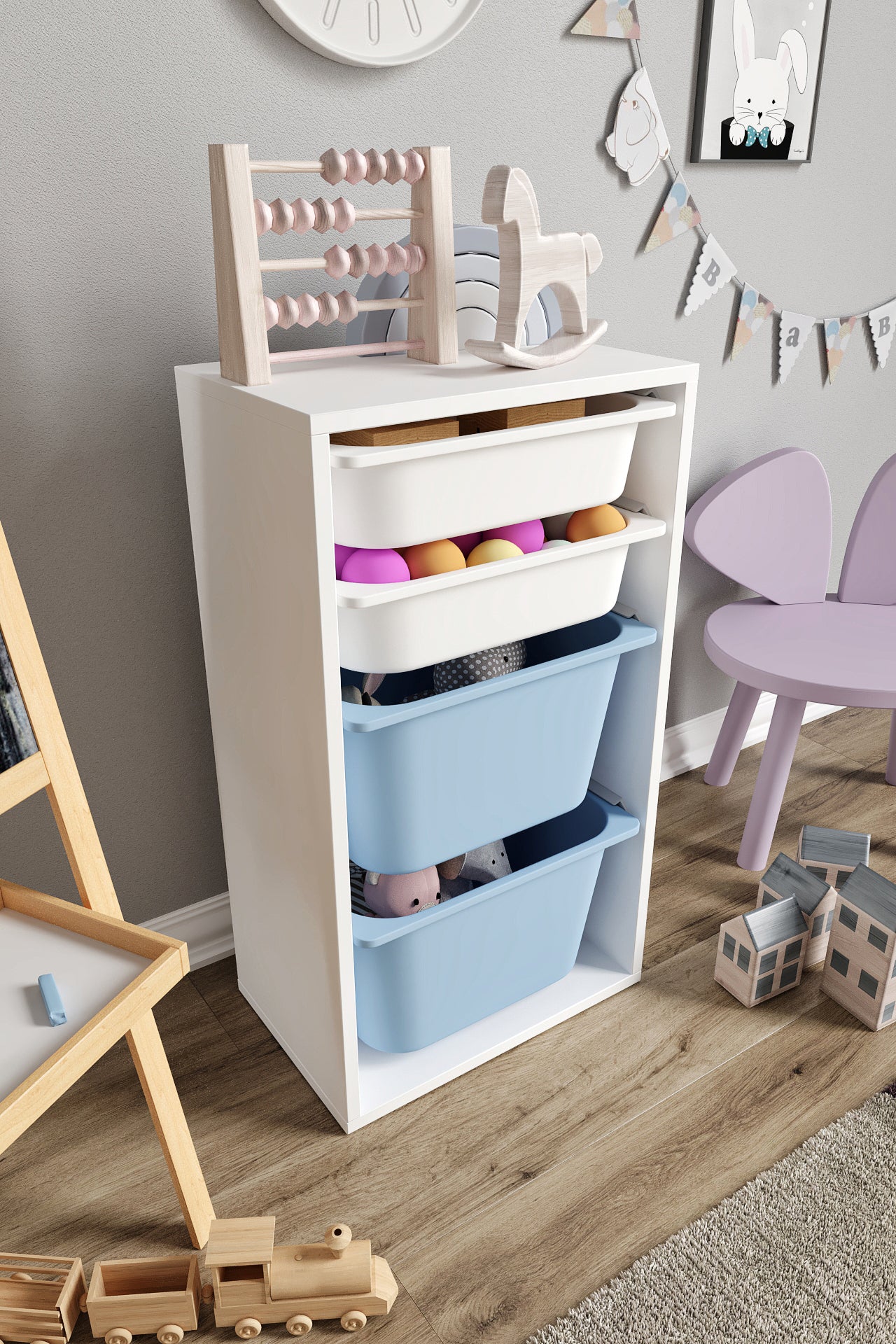 Toy cabinet with 4 baskets, 100% MDF (2 large baskets, 2 medium baskets)