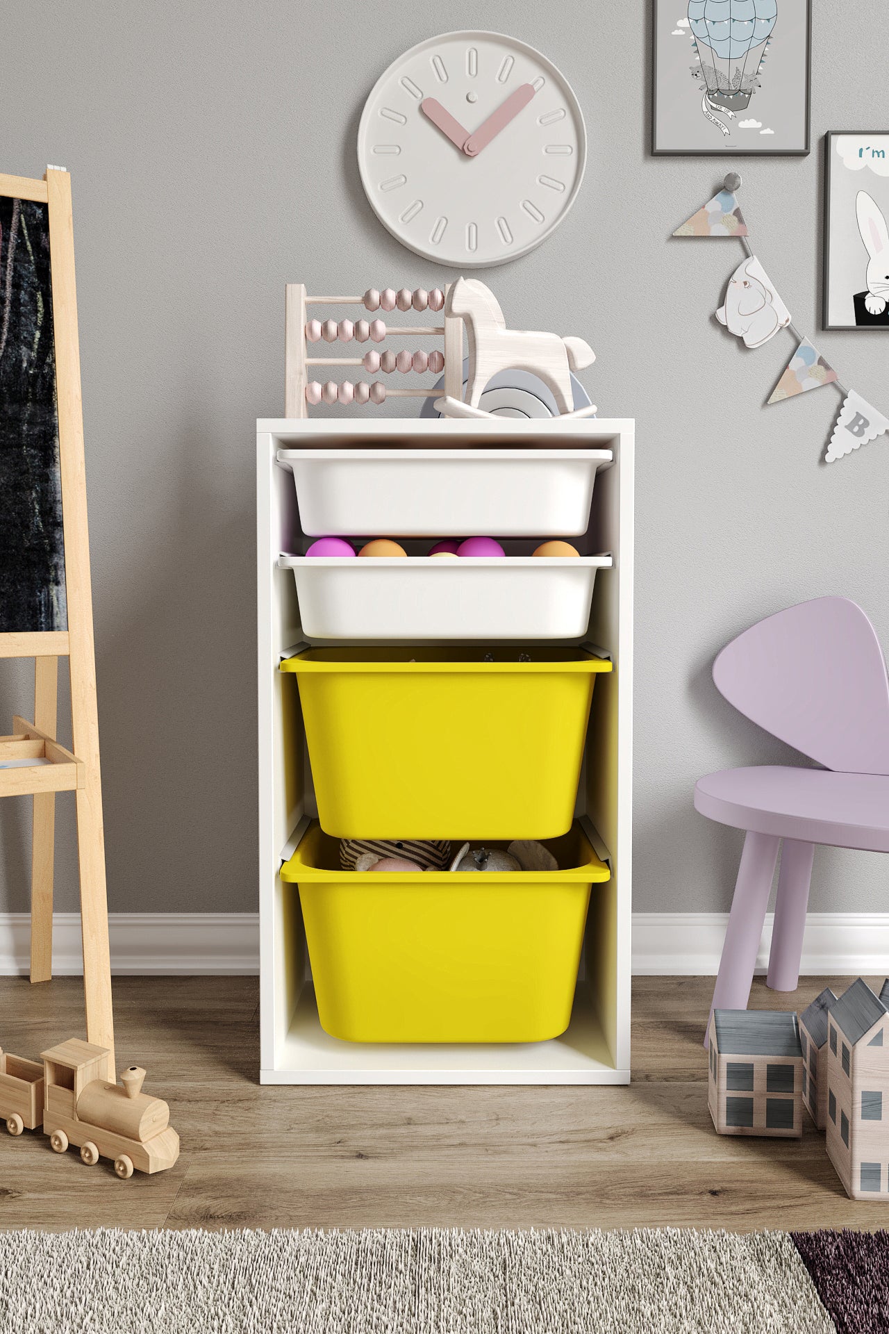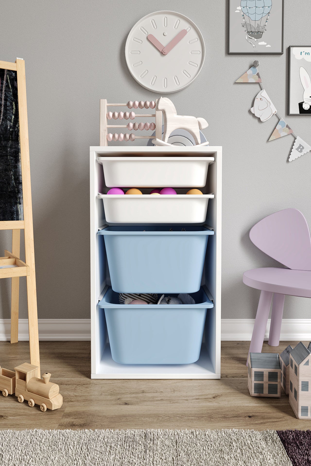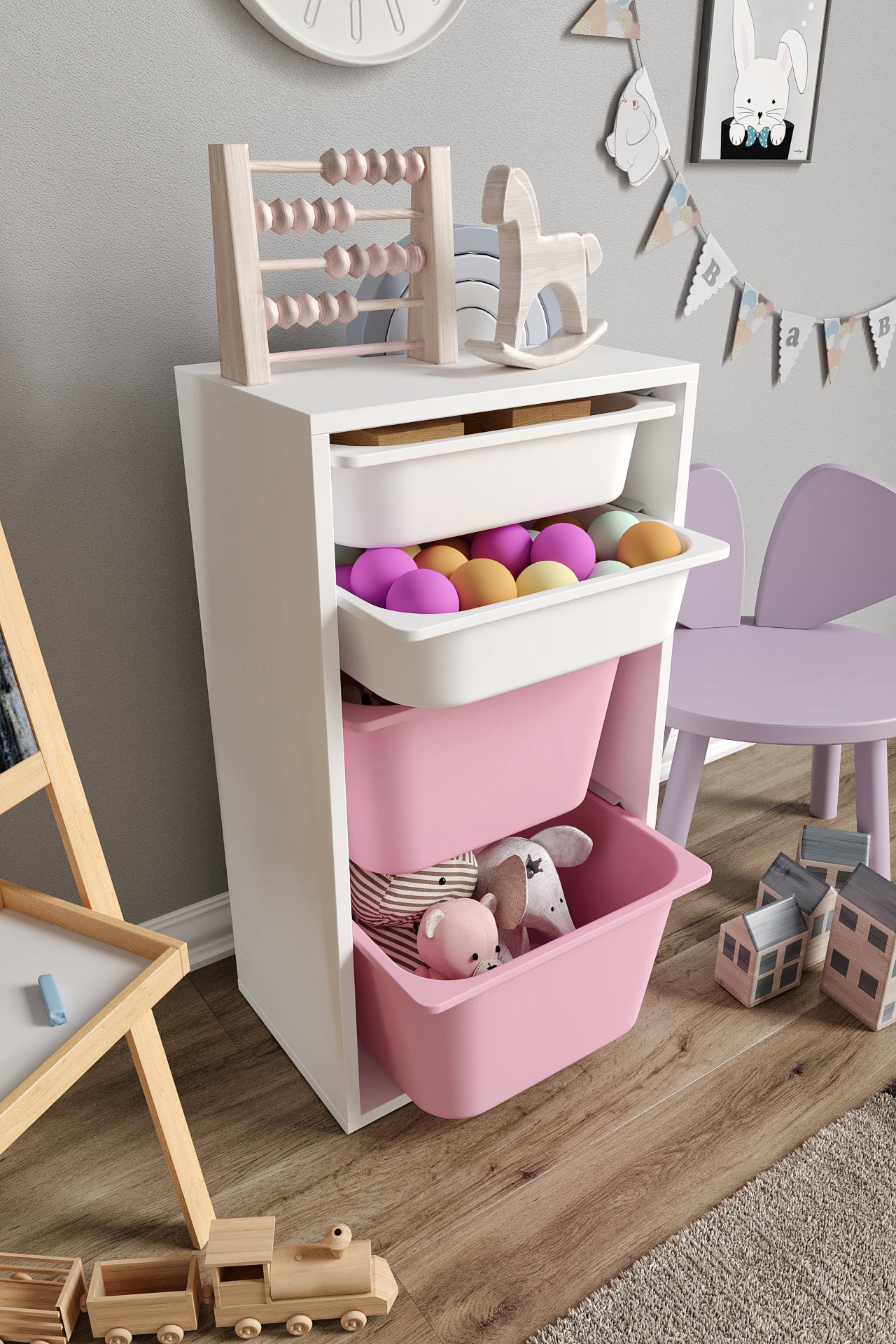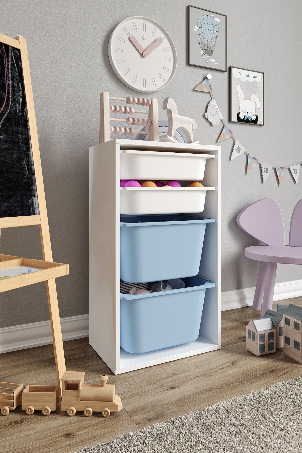 Toy cabinet with 4 baskets, 100% MDF (2 large baskets, 2 medium baskets)